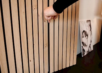 Akoestisch: Niets zo vervelend als een kale ruimte waarin gesprekken letterlijk uitgehold worden. Met de Maestro Latt-wandpanelen verbeter je het geluid in de gewenste kamer. Geluidsgolven worden immers niet langer teruggekaatst, maar tussen de groeven van het Latt-wandpaneel opgevangen.