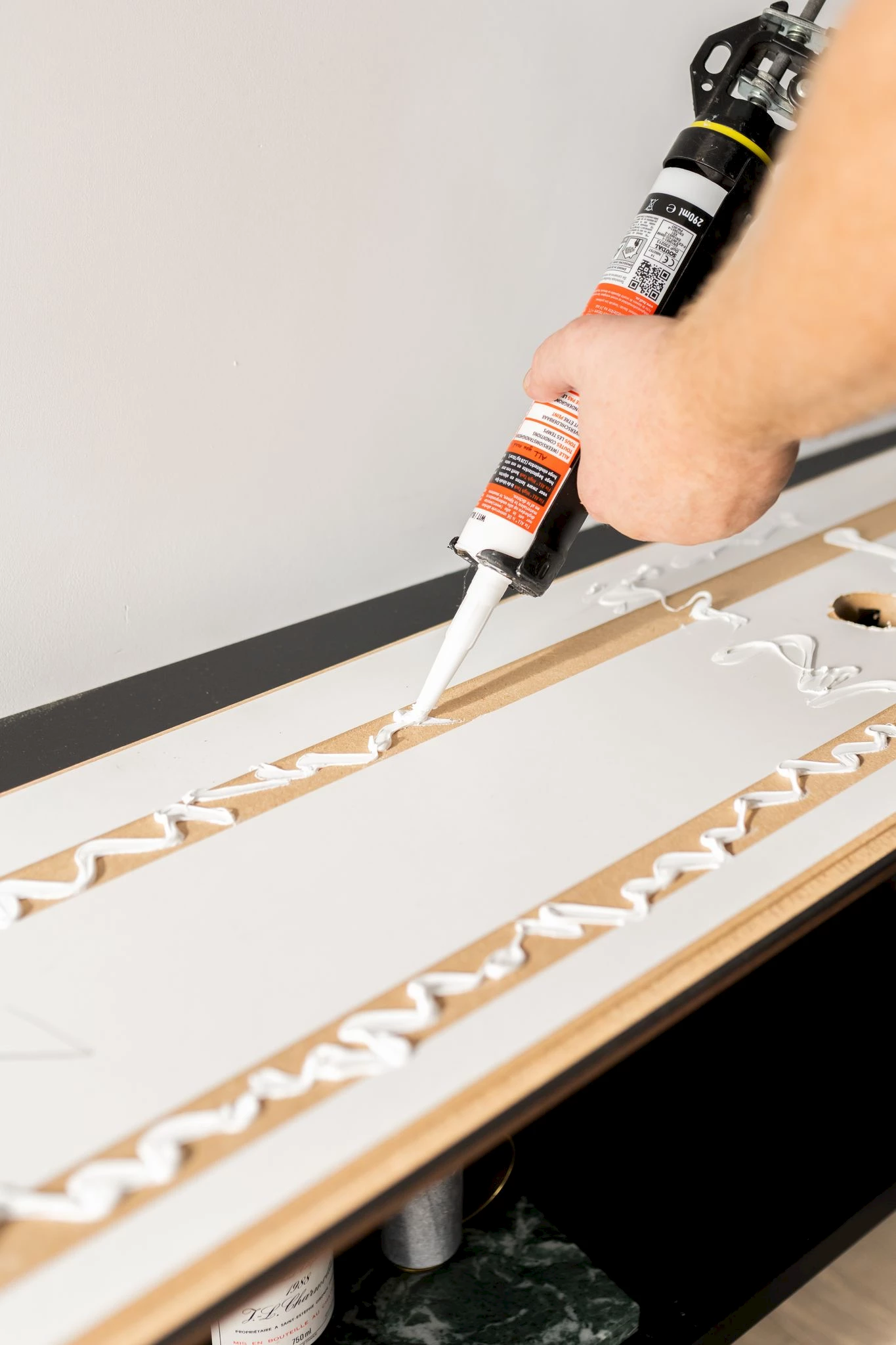 2. Breng lijm aan op de wand en/of op de achterzijde van het Latt-wandpaneel.